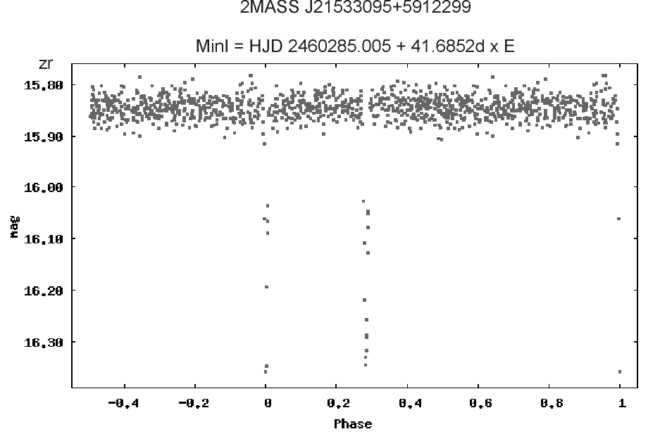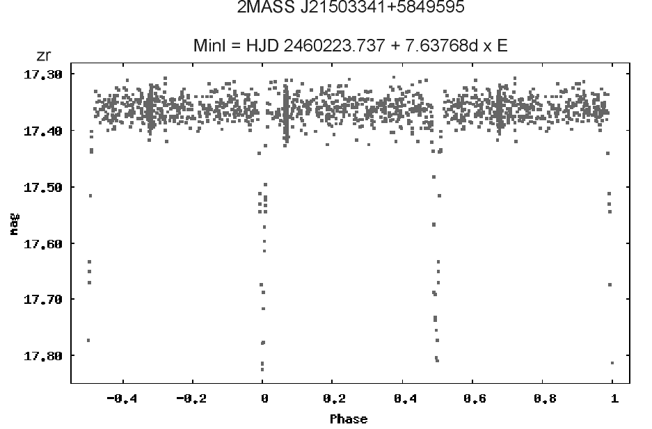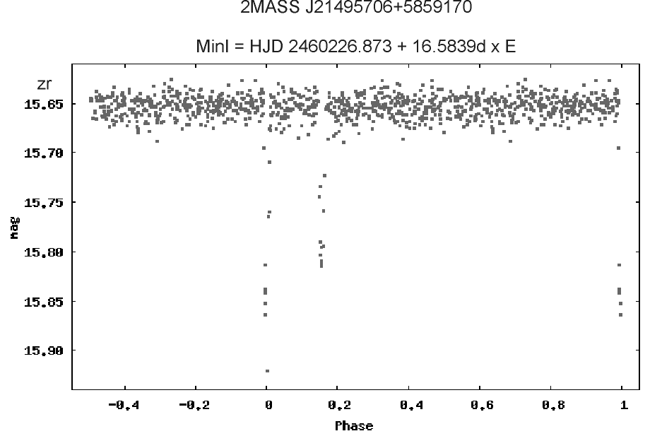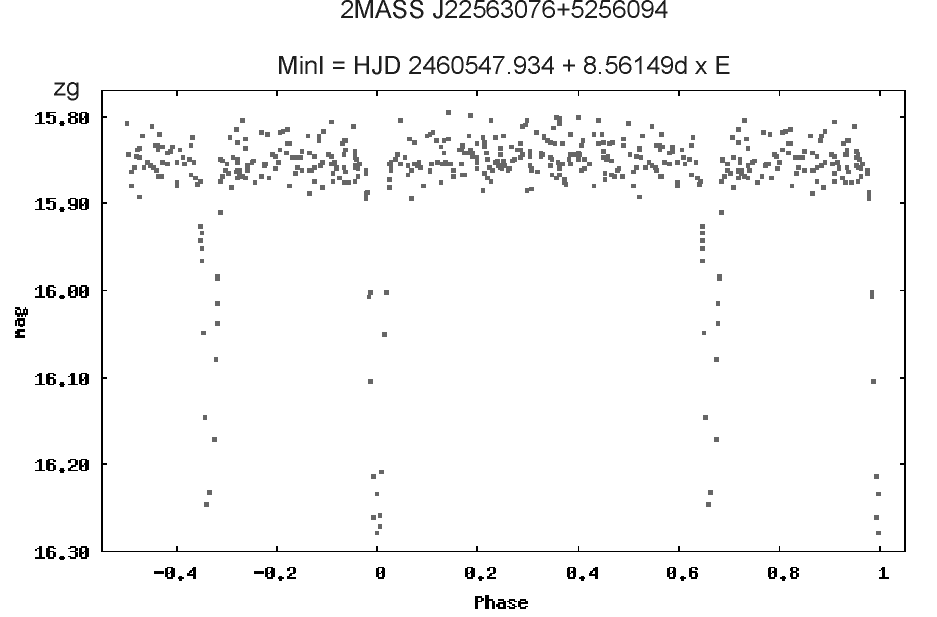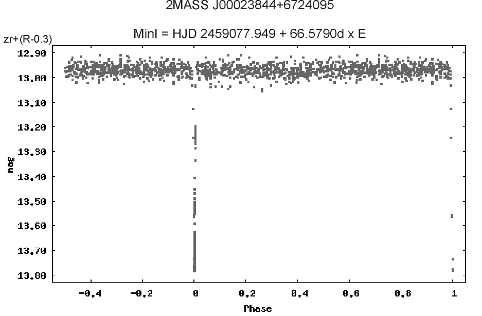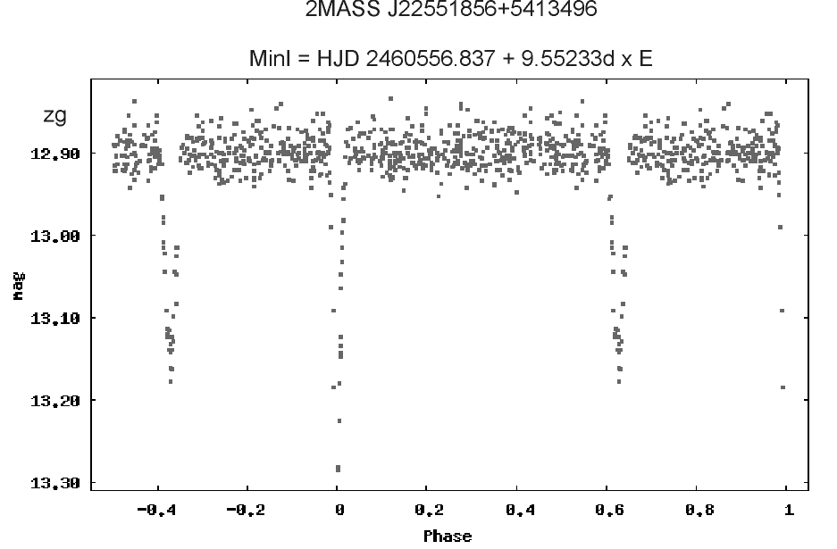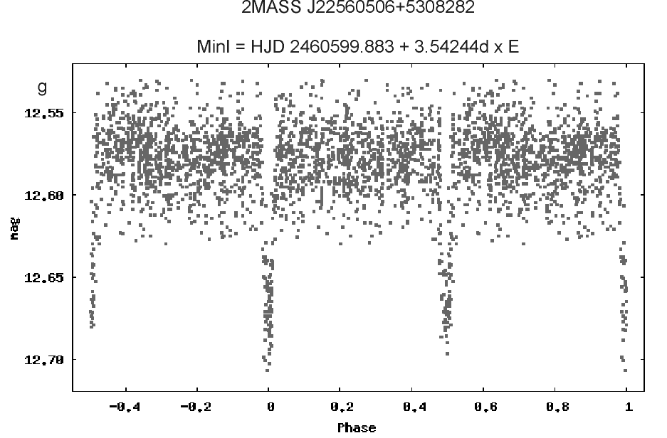 12. = USNO-A2.0 1575-05047588. MinII = 19.09 zr, D = 0.02 P. Eccentric orbit: MinII–MinI = 0.518 P. zg = 19.73 - 20.38, MinII = 19.98 zg. The variability was reported by Liakos and Nanouris (2014) with the type EA without period and magnitude range; only one MinI was observed.