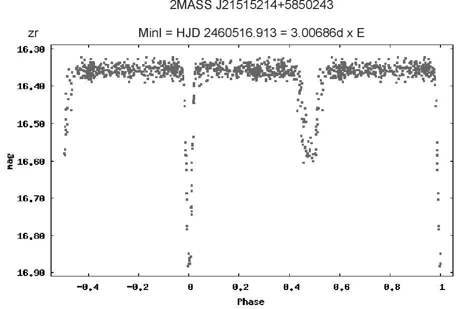 2. = USNO-A2.0 1500-01640775. MinII = 17.22 zr, D = 0.06 P. The object is included in the Gaia DR3 catalogue of variable stars (Gaia Collaboration, 2022) with the type E and incorrect P = 2.10795 d.