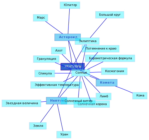 Klass malyh planet Solnechnoi sistemy, dvizhushihsya mezhdu orbitami Yupitera i Neptuna. Pervoe takoe telo obnaruzhil 18 oktyabrya 1977 g. amerikanskii astronom Charlz Kouel (Ch.Kowal) na fotoplastinkah, poluchennyh na 1.2-m kamere Shmidta Palomarskoi observatorii (SShA). Ob'ekt poluchil oboznachenie 1977UB i, kak asteroidu, emu dali ocherednoi nomer 2060. Odnako uverennosti v tom, chto eto imenno asteroid, ne bylo, poskol'ku na takom bol'shom rasstoyanii ot Solnca i yadra komet ne ispuskayut gaz. Poetomu ob'ekt nazvali Hironom (Chiron) v chest' legendarnogo kentavra, takzhe imevshego dvoistvennuyu prirodu. Deistvitel'no, kogda Hiron prohodil v 1988 g. perigelii, u nego poyavilis' gazovaya koma i hvost. K mayu 2000 g. v semeistve kentavrov bylo uzhe okolo 15 chlenov; vsem im dayut imena mificheskih kentavrov: Fol, Ness i dr. Ih orbity umerenno vytyanuty (e = 0.1-0.5) i nakloneny k ekliptike na ugol ot 4o do 25o . Odin ob'ekt imeet obratnoe dvizhenie vokrug Solnca. Diametry kentavrov 100-300 km i ves'ma temnaya poverhnost'.Surdin V.G., GAISh, Moskva